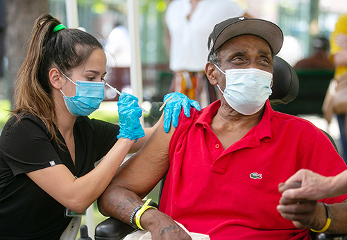 The L.A. County Department of Health Services Housing division and the United Way of Greater L.A. hosted a COVID-19 vaccination clinic in the Downtown area of Skid Row.