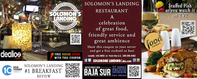 Solomon’s Landing restaurant bar and grille is located in the best people watching spot right on the marina in Cabo San Lucas behind the El Tesoro Hotel and Resort. We have restaurant seating as well as a huge four-sided bar where you can have fresh sushi made right in front of you, or order some of our most popular dishes at a special price.